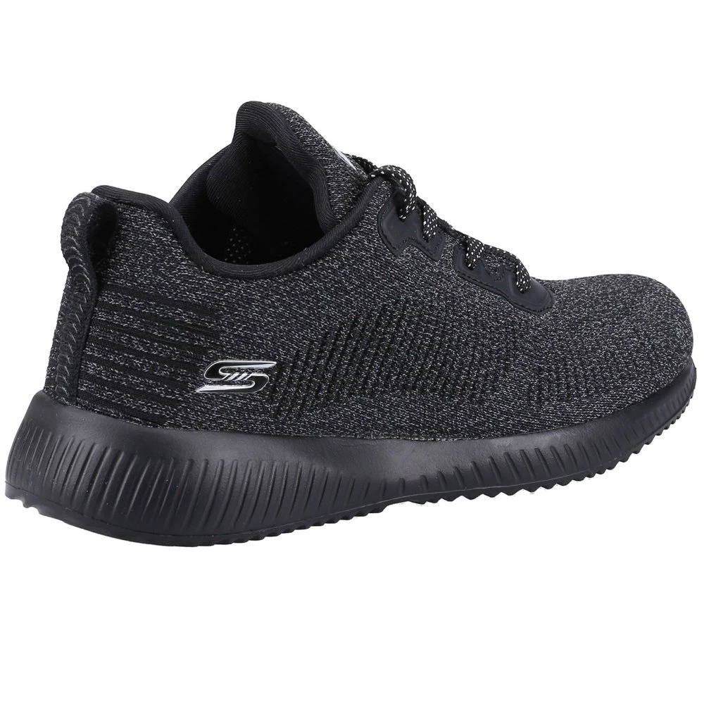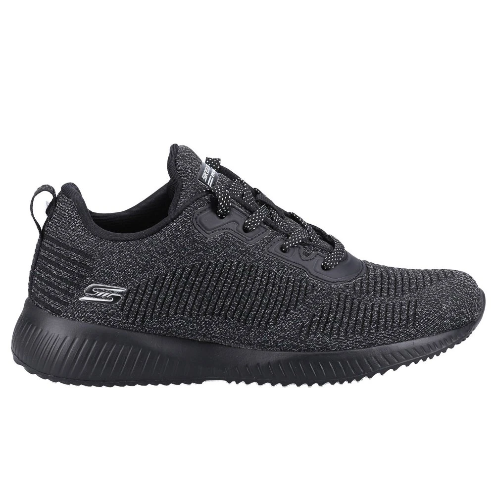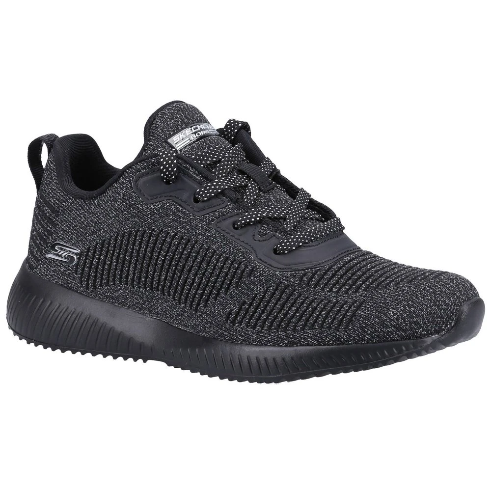 Be seen in standout style and sporty comfort with the BOBS from Skechers BOBS Sport Squad – Ghost Star shoe. This lace-up fashion trainer features a reflective finish engineered knit upper with synthetic overlays and cushioned Memory Foam insole.