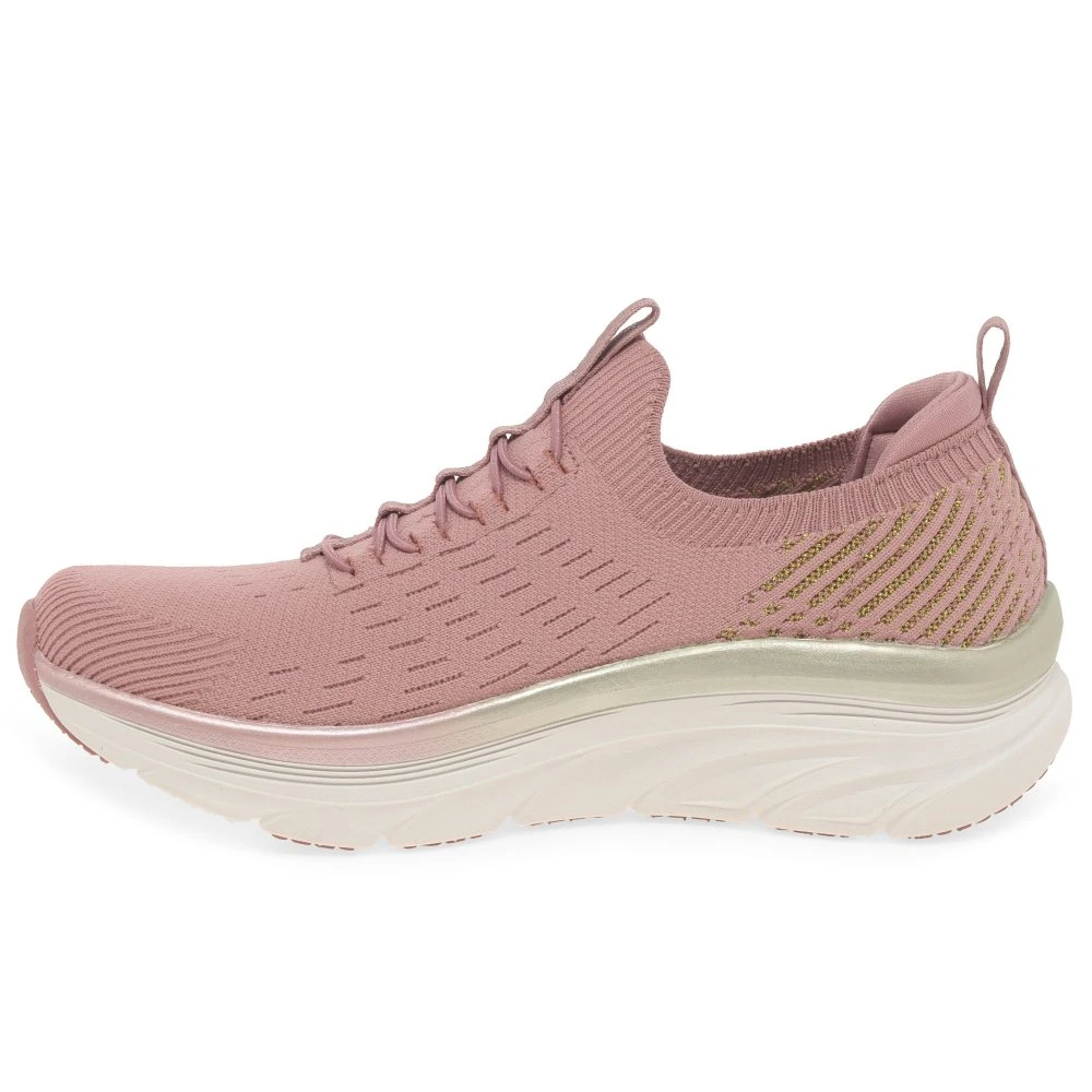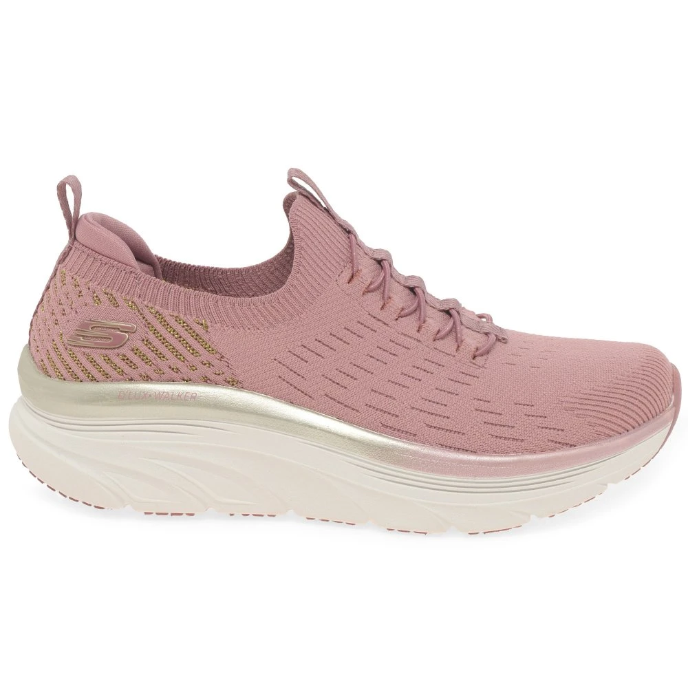 The Skechers D’Lux Let It Glow women’s sports trainers feature a stretch mesh upper with a breathable design. Day-long comfort is provided with a Skechers Air-Cooled Memory Foam® cushioned comfort insole and a cushioned midsole for added support. Slip on and pair with jeans or leggings for a sporty off-duty style.