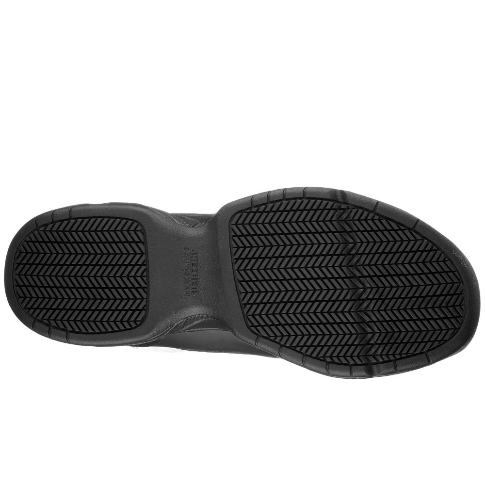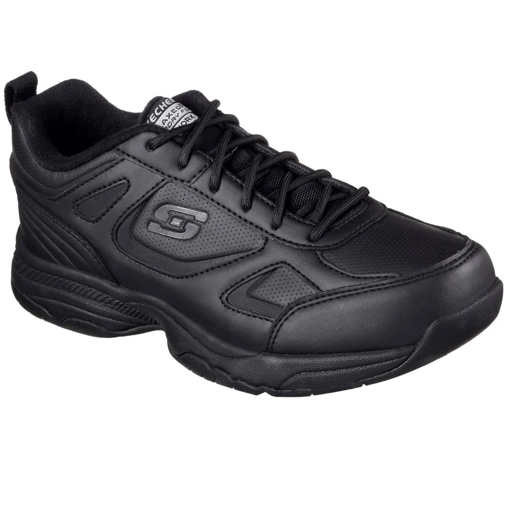 Sporty style, all day safety and comfort comes with Skechers Work Relaxed Fit: Dighton – Bricelyn. This lace-up features a slip-resistant smooth synthetic and leather upper with a Skechers Memory Foam insole.