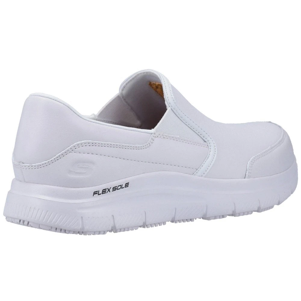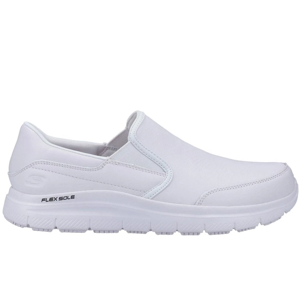 Smooth versatile style, surefooted safety, and comfort combines in the Bronwood shoe. Smooth leather and synthetic upper in a slip on casual comfort slip resistant work loafer moc with stitching and overlay accents. Memory Foam insole.