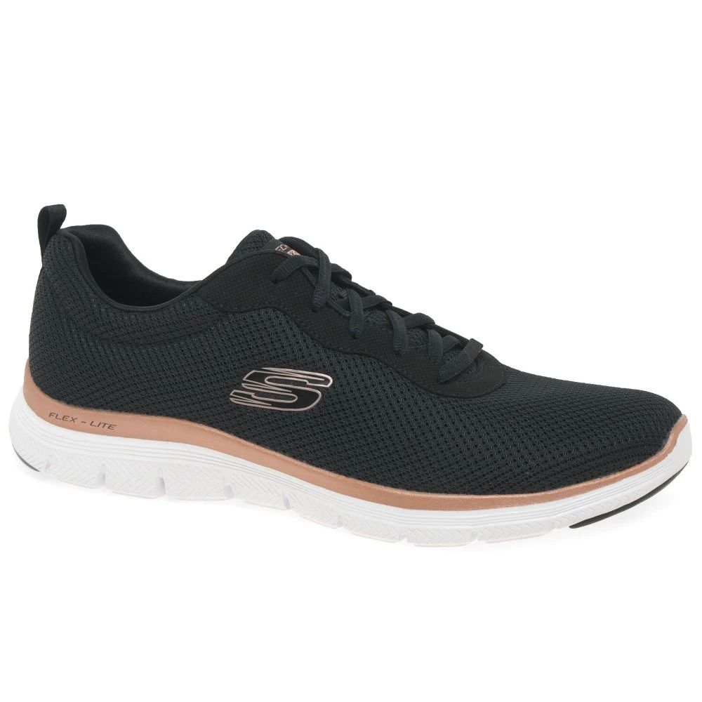 Highly flexible and great for foot support, the Skechers Flex Appeal 4 Brilliant View women’s sports trainers are crafted from breathable mesh uppers and feature shock-absorbing midsoles with Air-Cooled Memory Foam® cushioned insoles. Lace up and machine wash if needed.