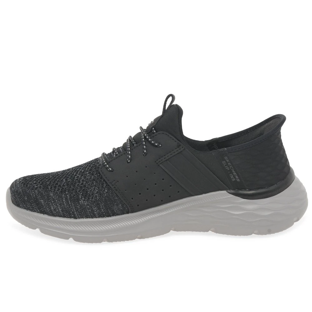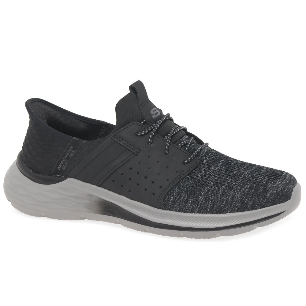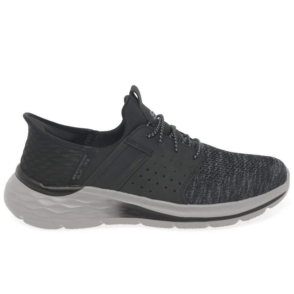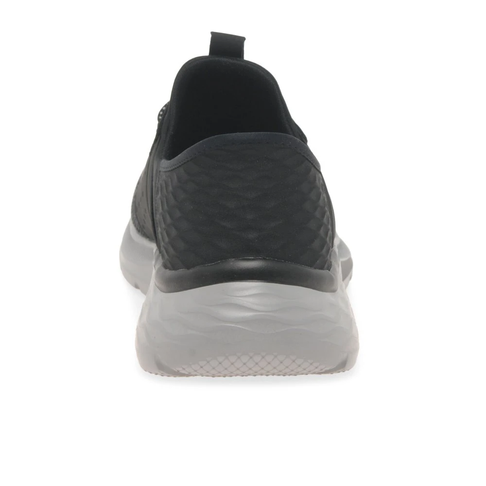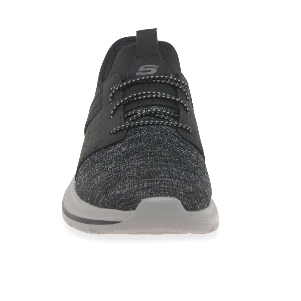 Simply step in and go wearing Skechers Garner Newick Mens Trainers. Designed with Skechers exclusive Heel Pillow, this stretch- laced style holds feet securely in place, offering a unique and relaxed fit. Featuring an Air-cooled Memory Foam comfort insole and Goga Mat Arch cushioning, Garner Newick are the perfect everyday trainer.Â