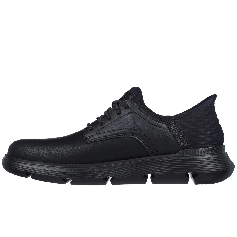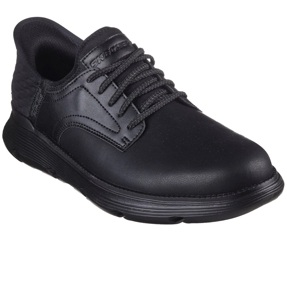Master your efficiency with a comfortable business casual look wearing Skechers Hands Free Slip-ins: Garza – Gervin. This TOUCHLESS FIT Oxford style features a smooth leather upper with stretch laces and a Skechers Slip-ins moulded heel panel.