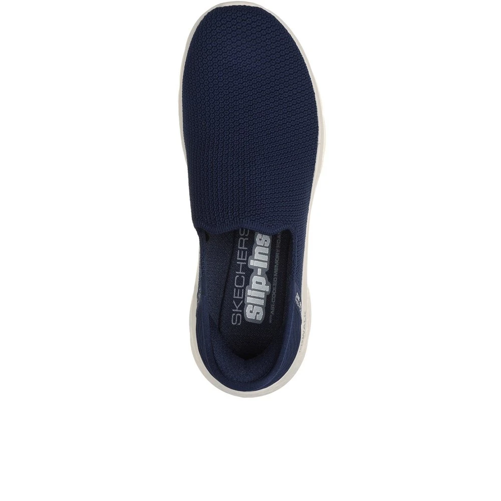 Step-in to convenient walking comfort and cushioning wearing Skechers Hands Free Slip-ins GO WALK Flex – Sunset View. This TOUCHLESS FIT slip-on design features a Stretch Fit mesh upper and our exclusive Heel Pillow