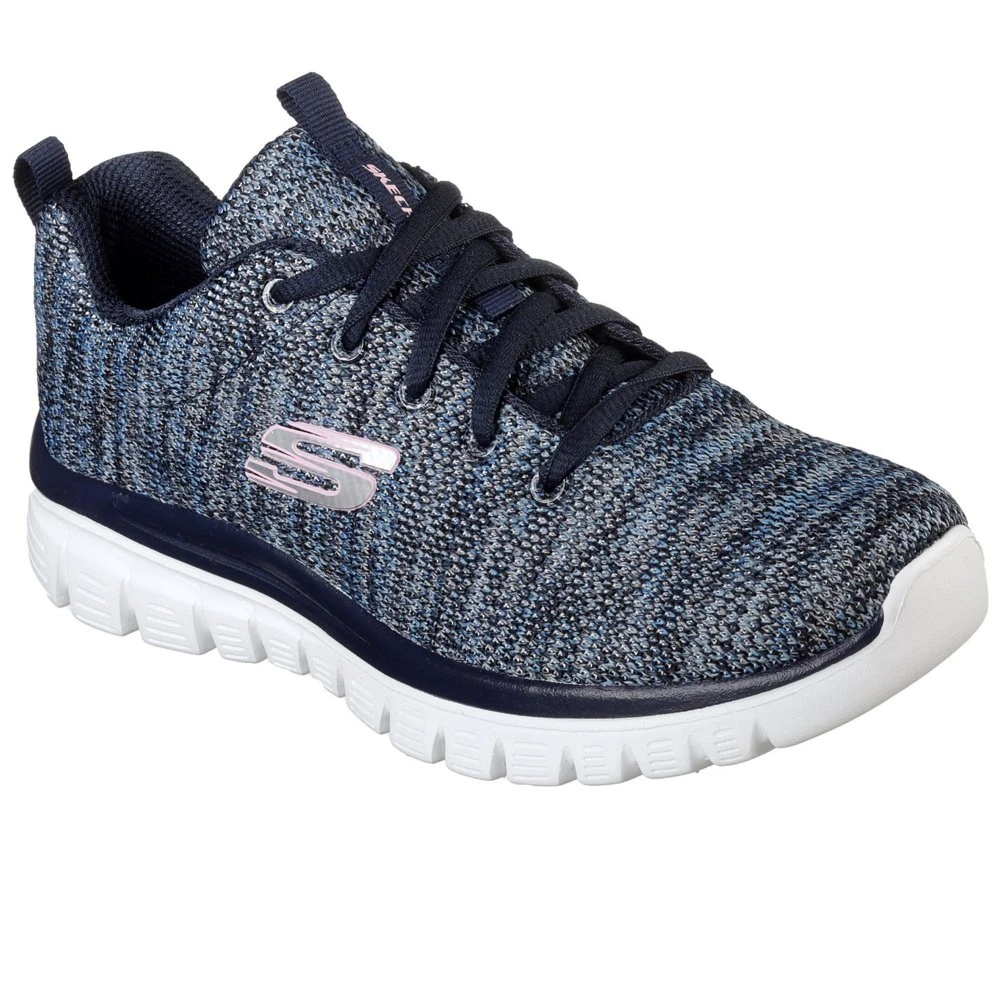 Enrich your sporty style and easy wearing comfort easily with the Twisted Fortune shoe. Flat knit mesh sporty fabric upper in a lace up athletic training sneaker with stitching and overlay accents.