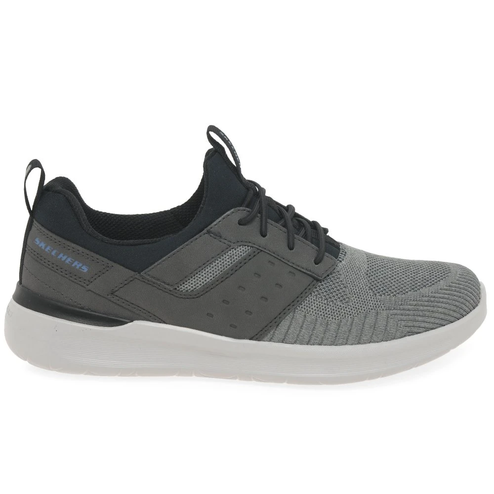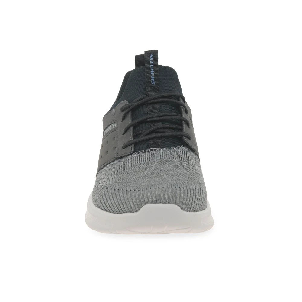 Styling is easy with the Skechers Lattimore Mens Trainers, which showcase breathable textile uppers with a man-made overlay. The sporty, lightweight shoe uses a Goga Mat arch for added flexibility and a cushioned insole for a personalised step.
