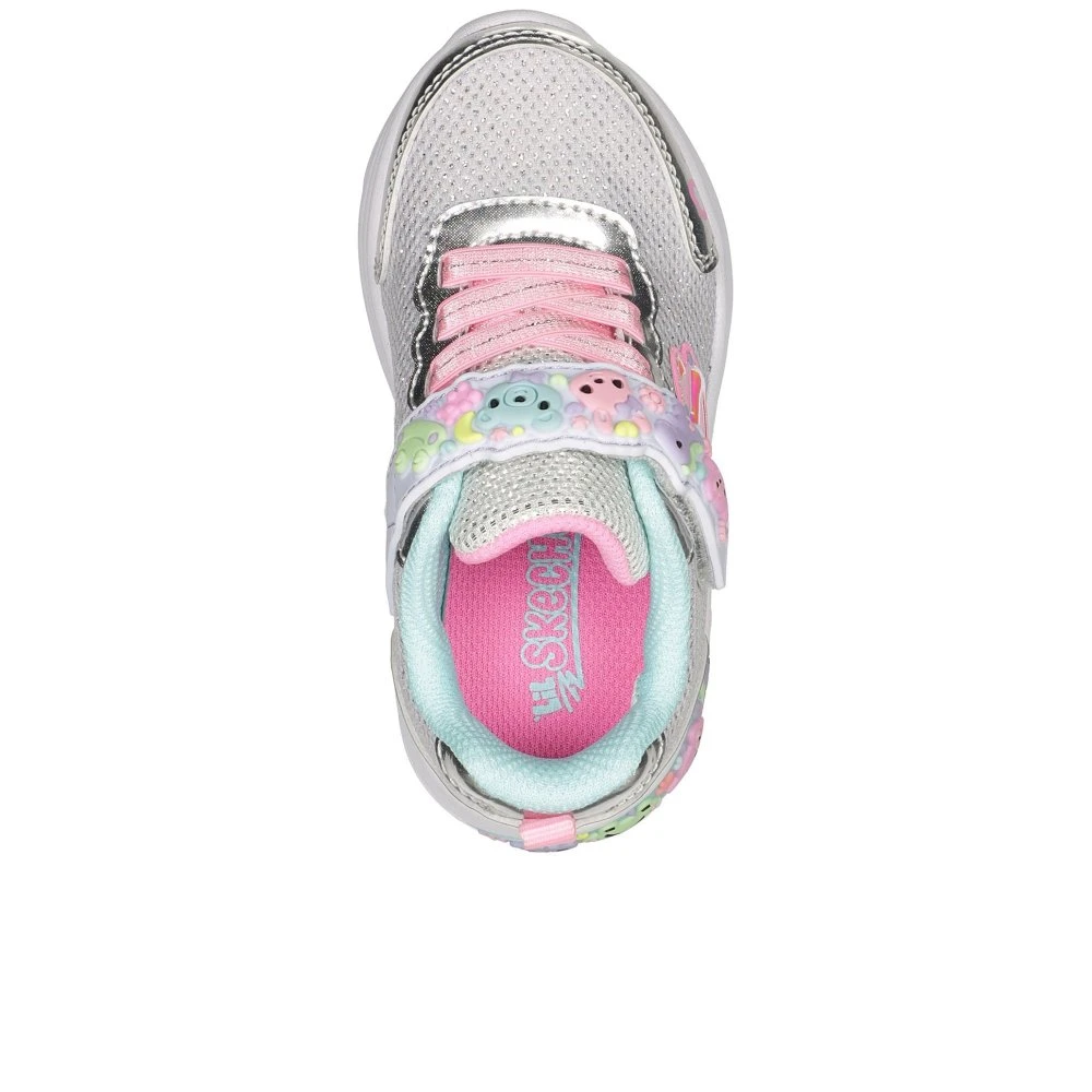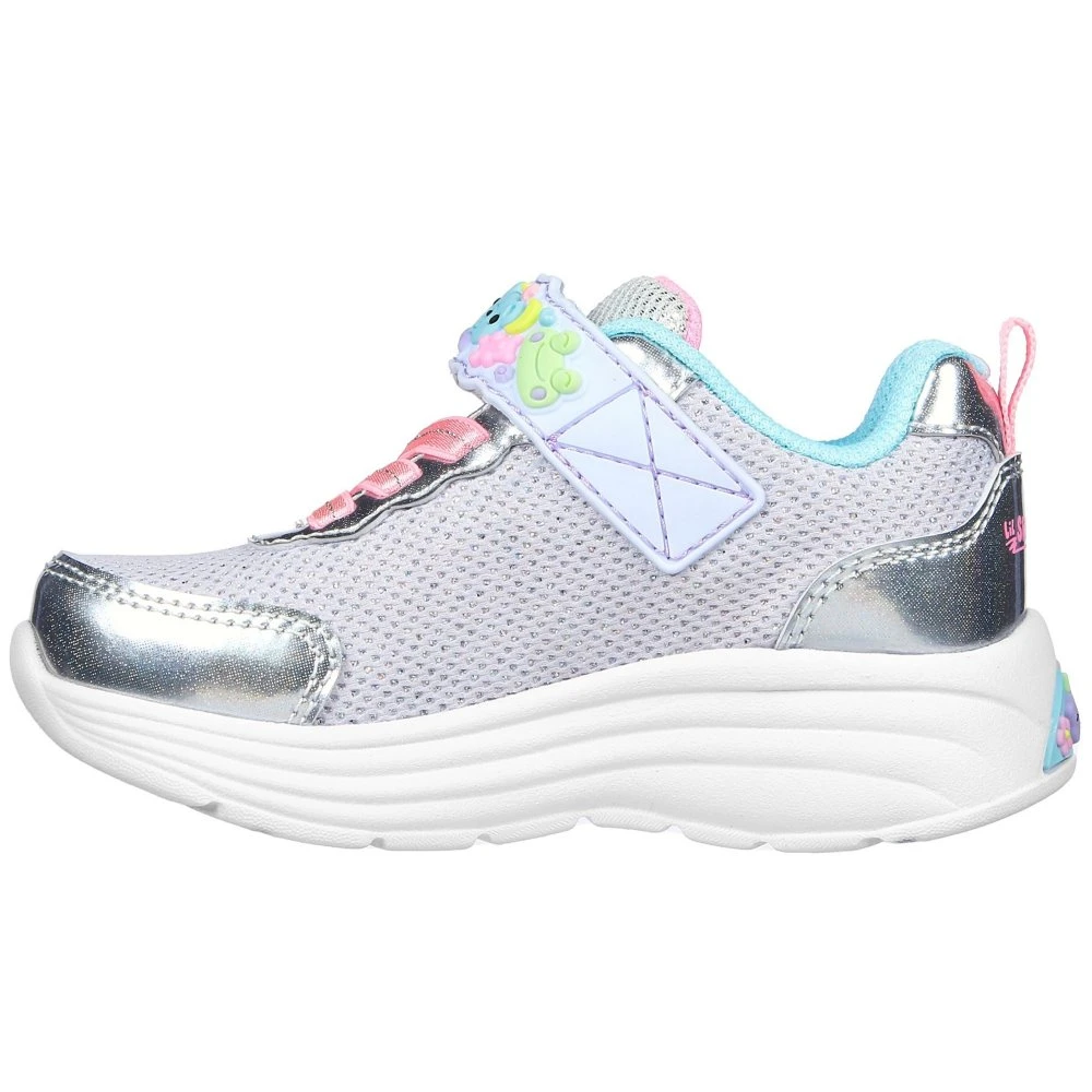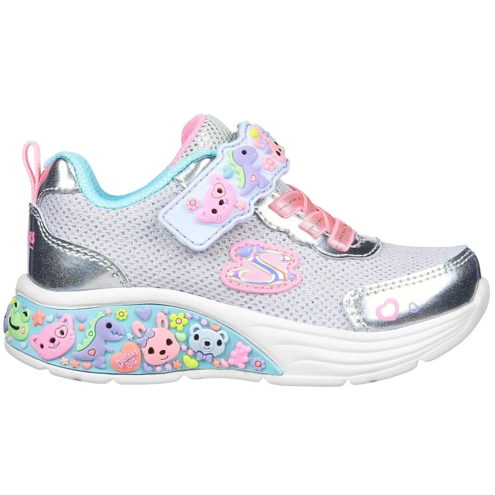 Cutesy style and all-day comfort combine in Skechers My Dreamers. This casual lightweight slip-on features a glitter mesh and synthetic upper with stretch laces and an instep strap