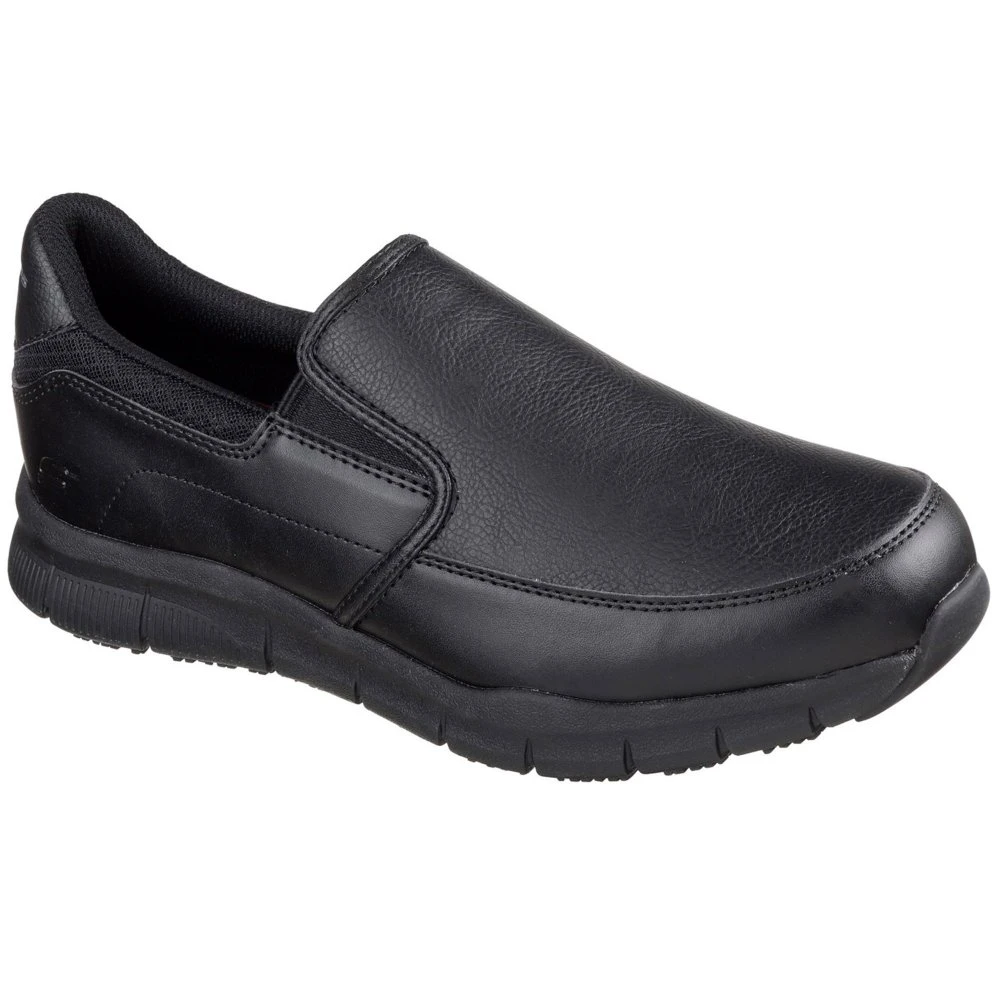 Work smarter and more comfortably with the Skechers Work Relaxed Fit: Nampa – Groton SR shoe. This slip-resistant sneaker features a slip-on smooth synthetic upper with cushioned Memory Foam insole and electrical hazard protection.