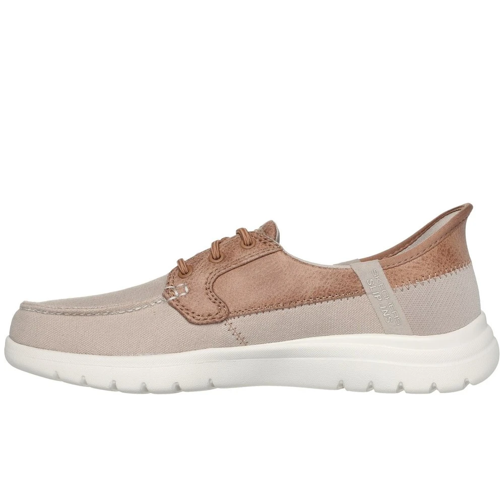 Step-in to convenient nautical comfort and cushioning wearing Skechers Hands Free Slip-ins On-the-GO Flex – Palmilla. This casual boat shoe style features a Skechers Air-Cooled Memory Foam insole and a hands-free moulded heel panel.