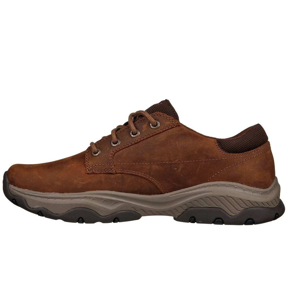 Bring classic style and comfort everywhere in Skechers Relaxed Fit: Craster – Fenzo. This casual lace-up features a smooth oiled leather upper with a Skechers Air-Cooled Memory Foam comfort insole and a durable Goodyear Performance Outsole.