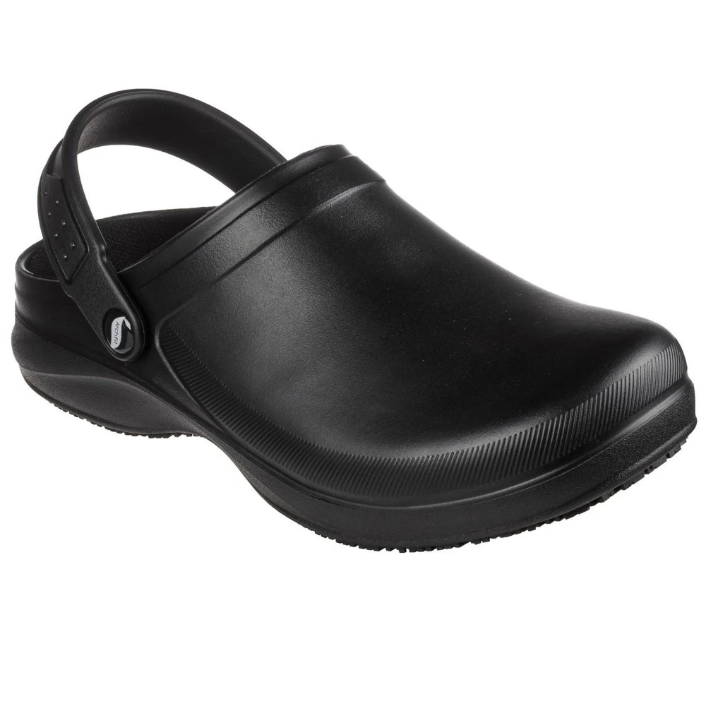 Slip on supportive comfort before starting on your prep work with Skechers Work: Riverbound. This slip-resistant clog features a sculpted flexible EVA upper with an Arch Fit contoured footbed and a convertible heel sling strap.