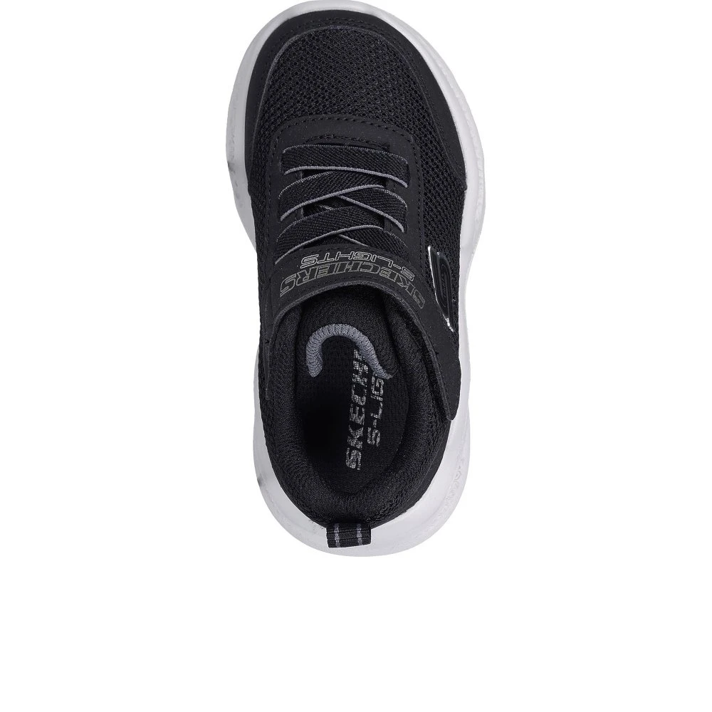 Illuminate your steps in sporty style and comfort with Skechers S-Lights: Meteor-Lights. This stretch-laced design has a mesh and synthetic upper, plus a fun light-up midsole.