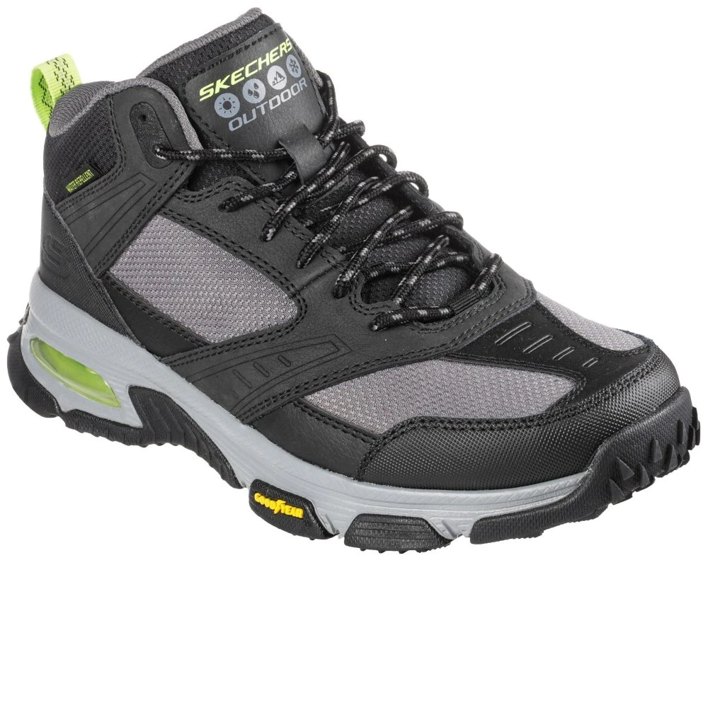 Gear up with exceptional traction and supportive comfort with Skechers Skech-Air Envoy – Bulldozer. This lace-up water repellent trail mid top sneaker features a leather and mesh upper with an Air-Cooled Memory Foam insole
