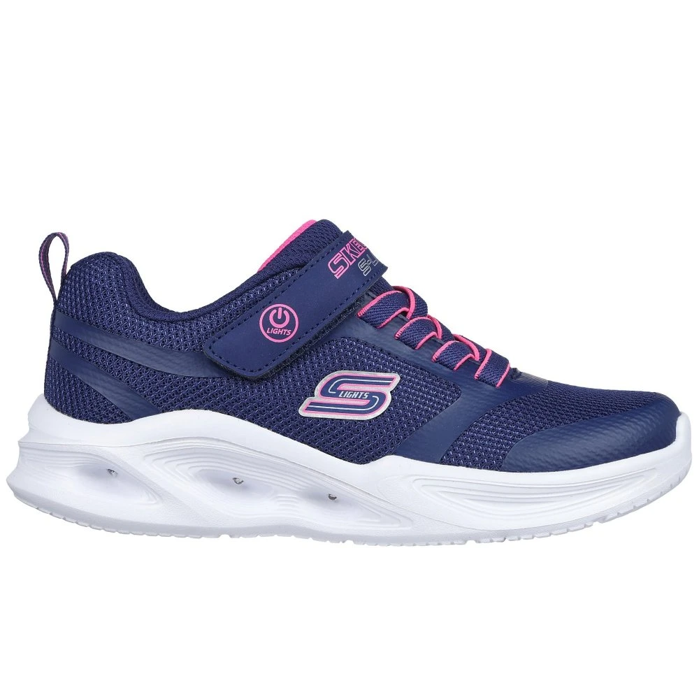 Bring the fun in sporty fashion wearing Skechers Sola Glow. This active multi-coloured lights design features a mesh and synthetic upper with stretch laces, an adjustable instep strap, and a well-cushioned light-up midsole.