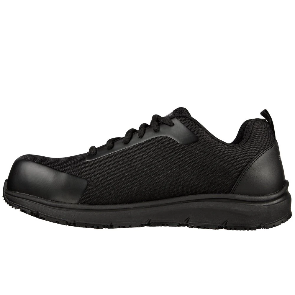 The safety you can rely on and athletic styling combine in Skechers Work: Ulmus. This puncture-and-slip resistant design features a mesh and synthetic upper in a lace-up front, cushioned Air-Cooled Memory Foam insole and a carbon safety toe.