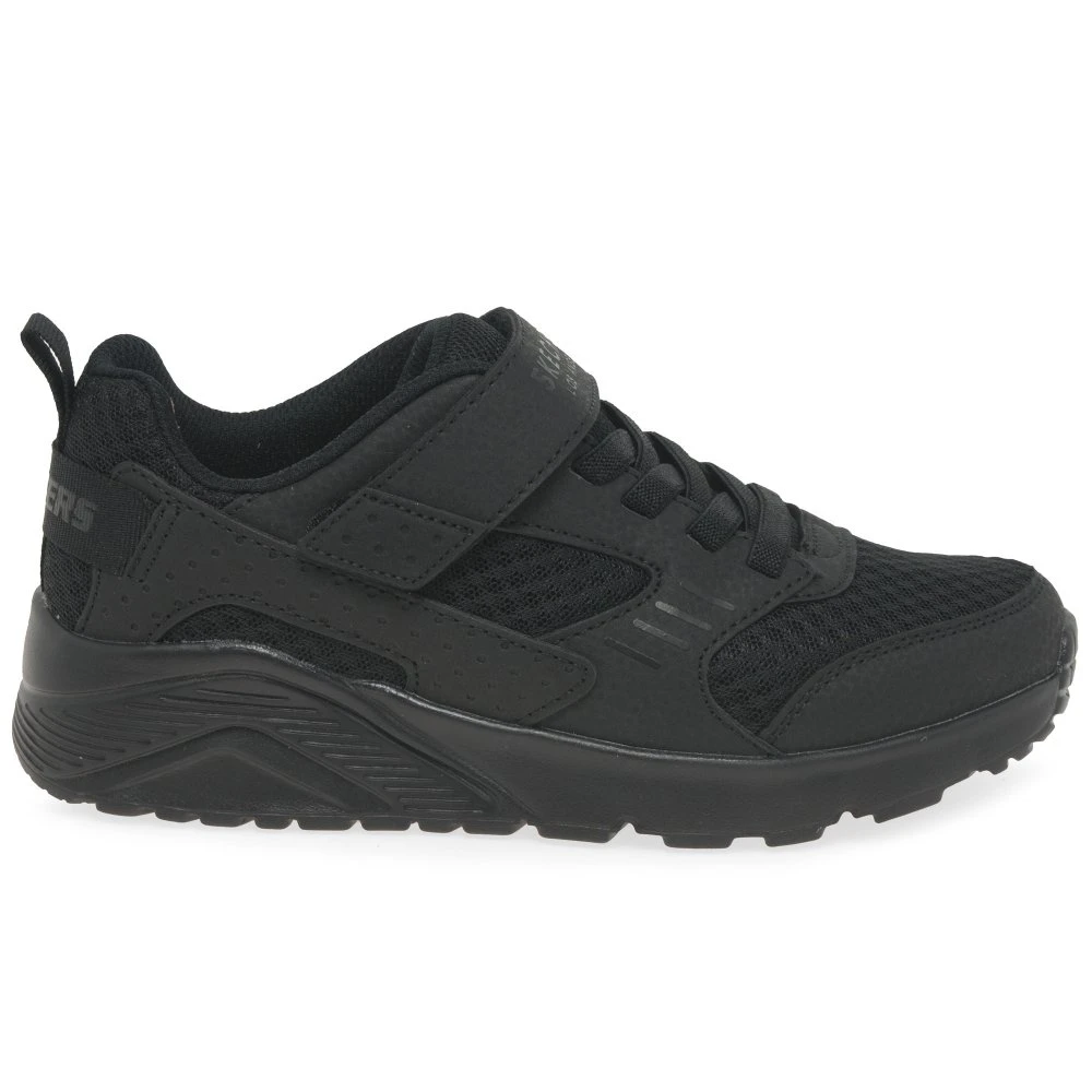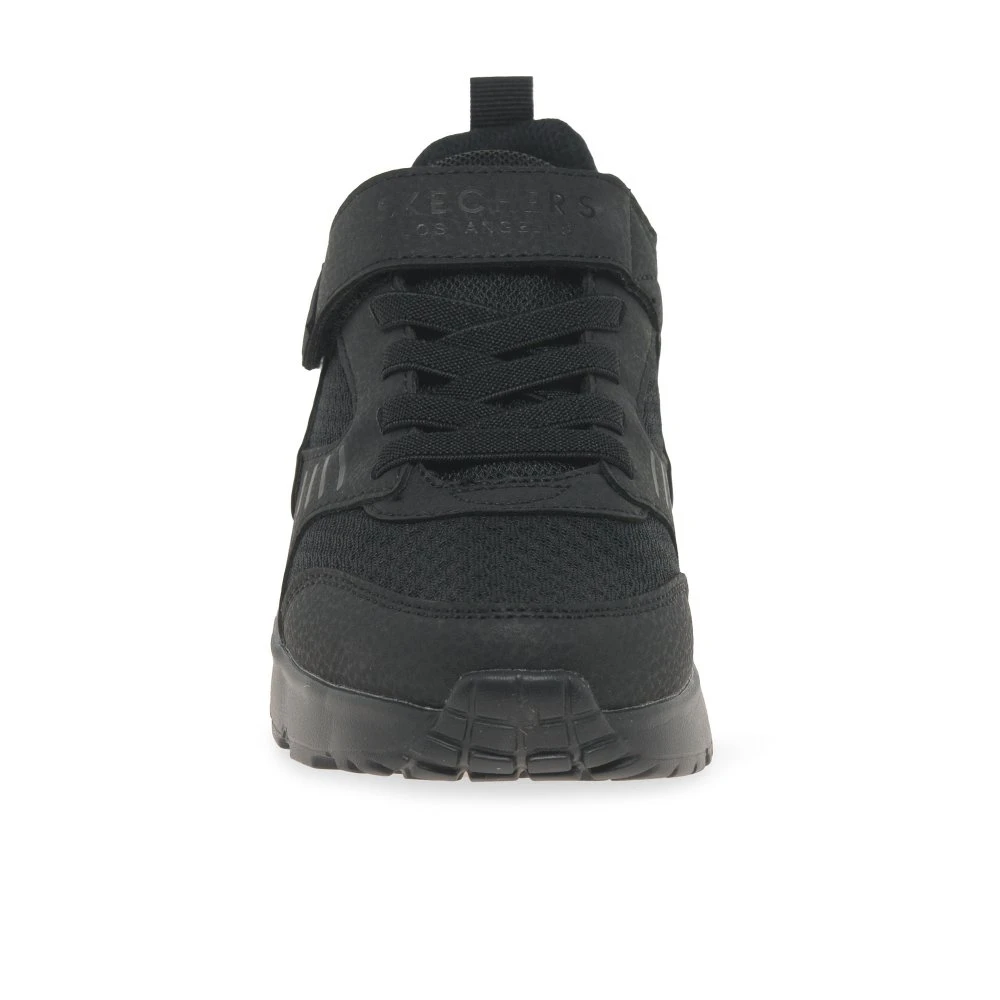 A breathable mesh upper and premium, manmade materials make up the trendy Skechers Uno Lite Zelton Boys Trainers, with an air-cooled memory foam insole to keep feet moving longer effortlessly.