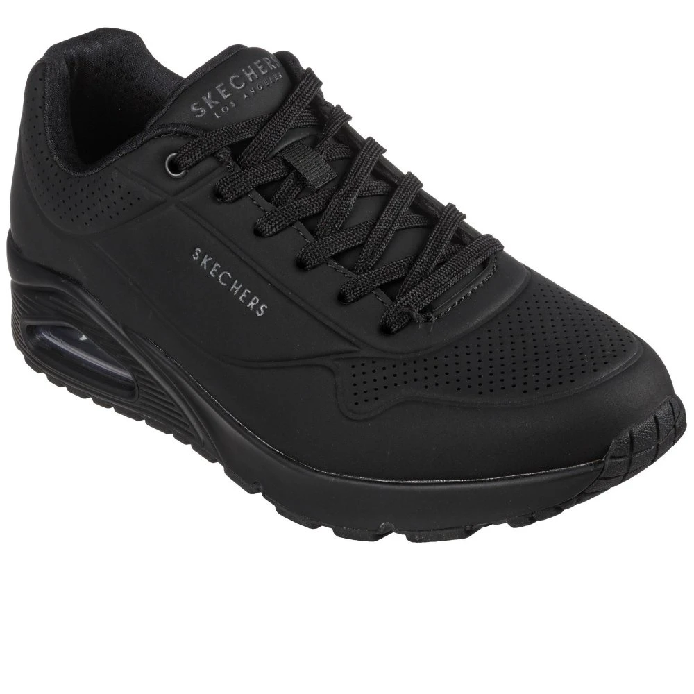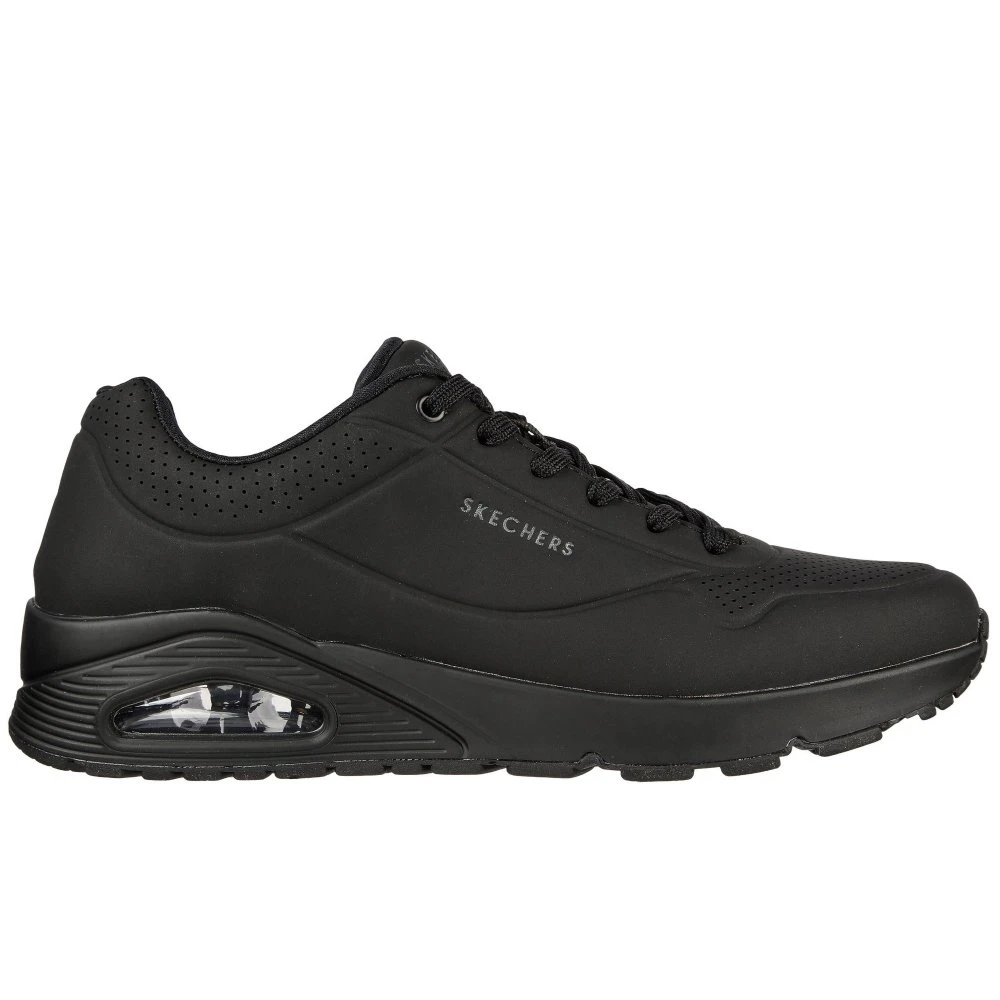Classic air cushioned style meets updated comfort in the Uno Stand on Air shoe. Smooth leather-textured synthetic upper in a lace up classic jogger style sneaker with stitching and perforation accents.
