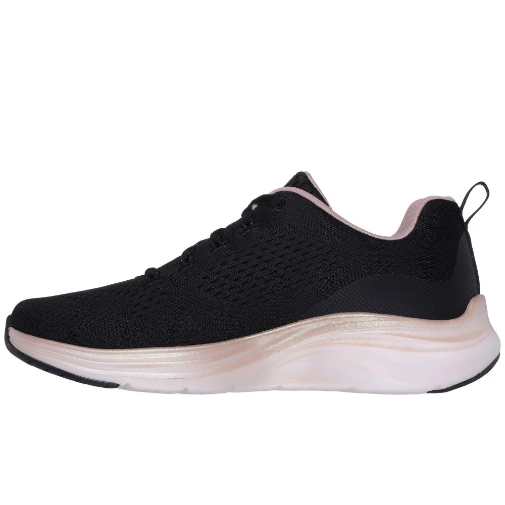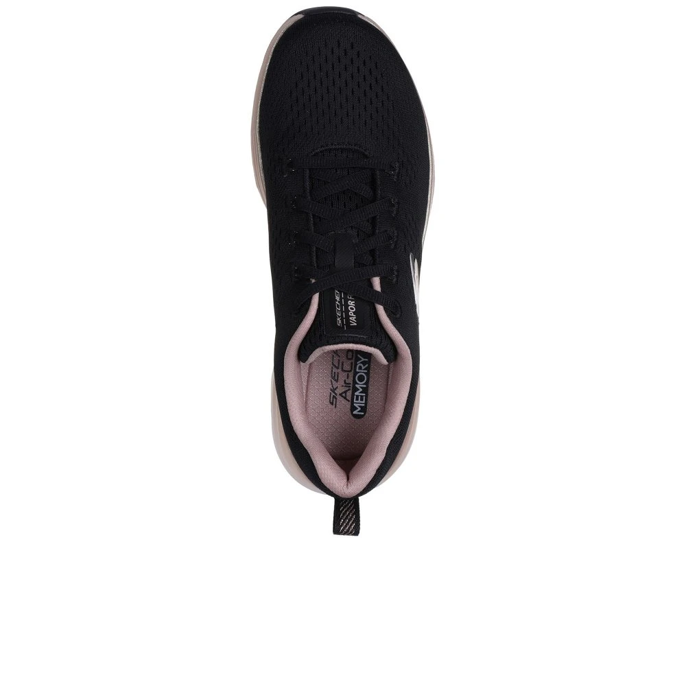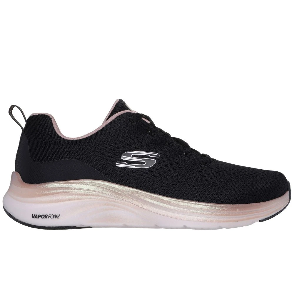 Take a shine to lightweight comfort and sleek style wearing Vapor Foam Midnight Glimmer. This vegan lace-up features an engineered mesh upper with a Skechers Air-Cooled Memory Foam insole, metallic trim, plus ultra-lightweight Vapor Foam cushioning.